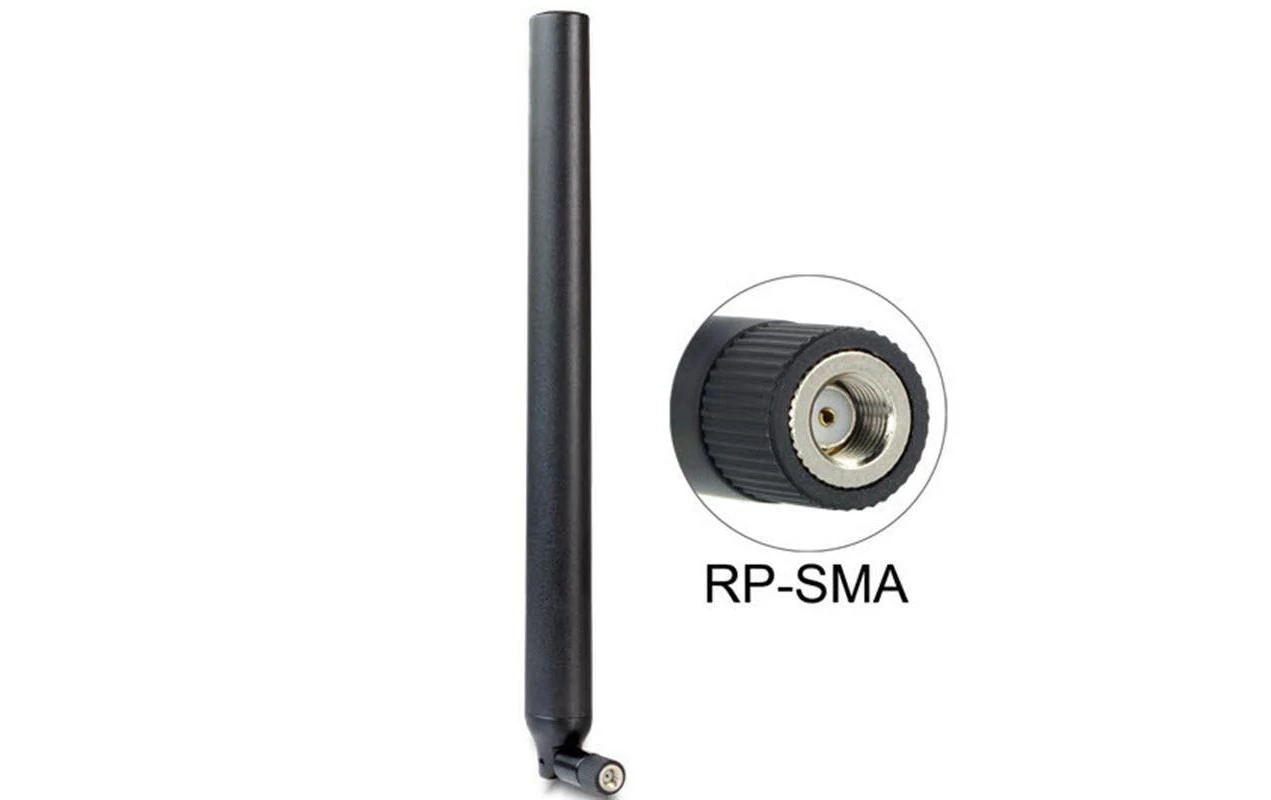 Delock WLAN 802.11 ac/a/h/b/g/n Antenne RP-SMA Stecker 5.5 – 9 dBi omnidirektional mit Kippgelenk schwarz